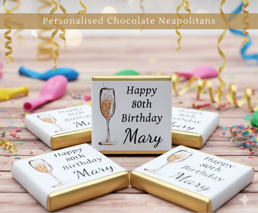 Hey there! Searching for a sweet treat to make your special occasions truly memorable? Our personalised Neapolitan chocolates are just what you need. Imagine the delight of your guests as they unwrap these charming little packages, adorned in exquisite gold foil or silver foil. Whether it's a wedding, christening, birthday, or even a solemn funeral, these chocolates add a touch of elegance and thoughtfulness. Choose from a range of flavours, including smooth milk chocolate, refreshing milk mint chocolate, rich dark chocolate, or invigorating dark mint chocolate. Each bite is an indulgent experience, perfect as party favours that say thank you in the most delicious way.