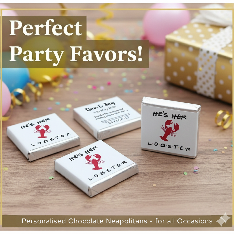 Hey there! Searching for the perfect touch to light up your wedding day? Our personalised wedding chocolates are just what you need to make your special day unforgettable. These delicious neapolitan wedding favours are customisable to reflect the charming personalities of the bride and groom, adding a sweet, thoughtful element to any celebration. Imagine the delight of your guests as they unwrap these decadent treats, each thoughtfully engraved with your names or wedding date. Not only do they taste divine, but they also serve as a cherished memento of your joyous occasion. Made with love and the finest ingredients, these chocolates are a beautiful way to share your love story. Trust me, they're the ideal blend of elegance and sweetness that your big day deserves!